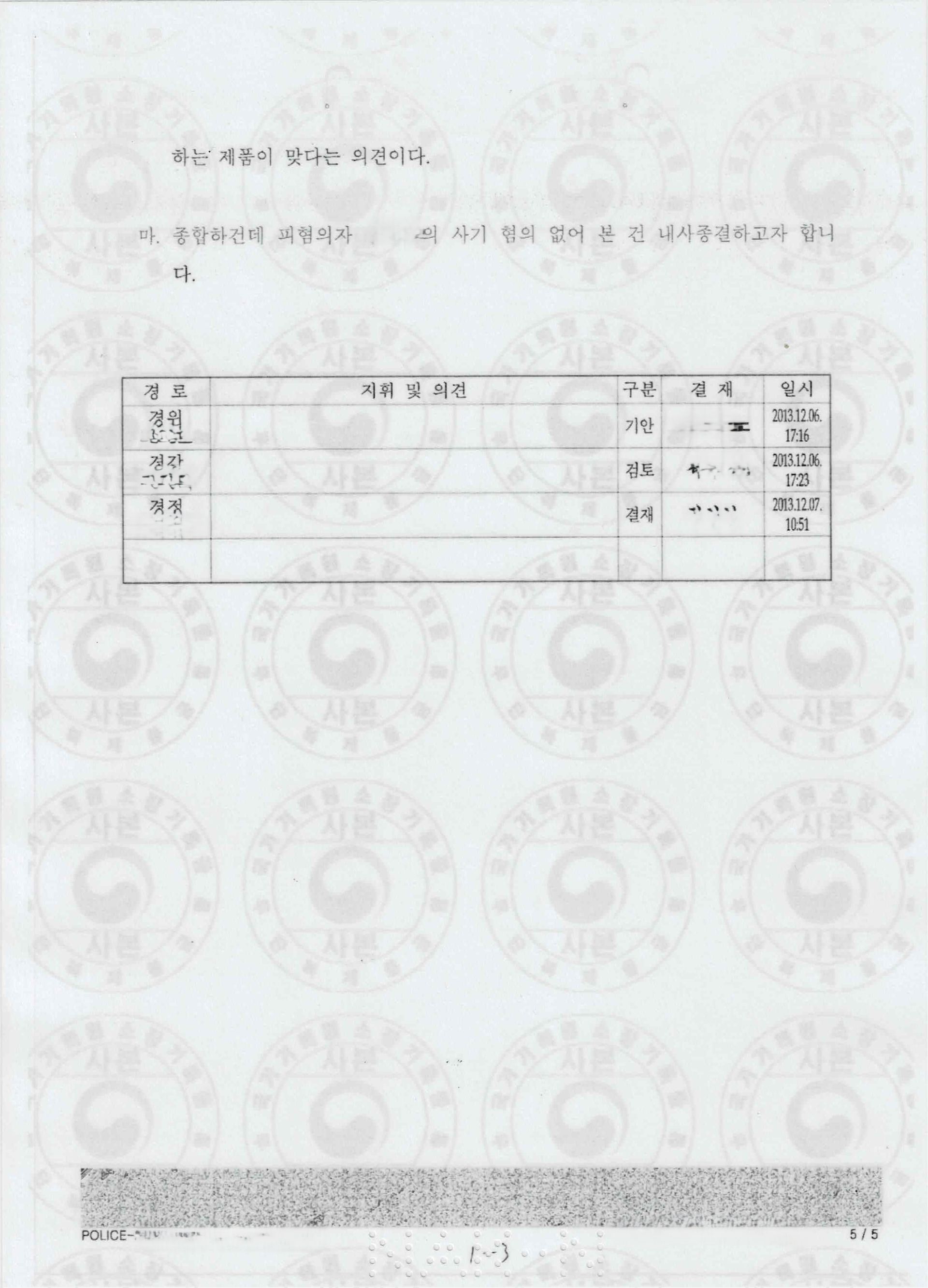 내사결과 보고
